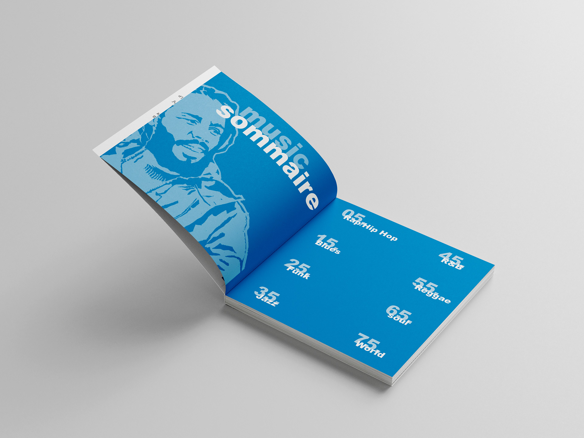Magazine conceptuel dédié à la culture musicale noire (jazz, soul, hip-hop, blues), conçu pour une expérience de lecture immersive. À travers des mises en page rythmées, des visuels percutants et une typographie expressive, le projet cherche à transmettre l’énergie et la richesse de ces genres musicaux.
